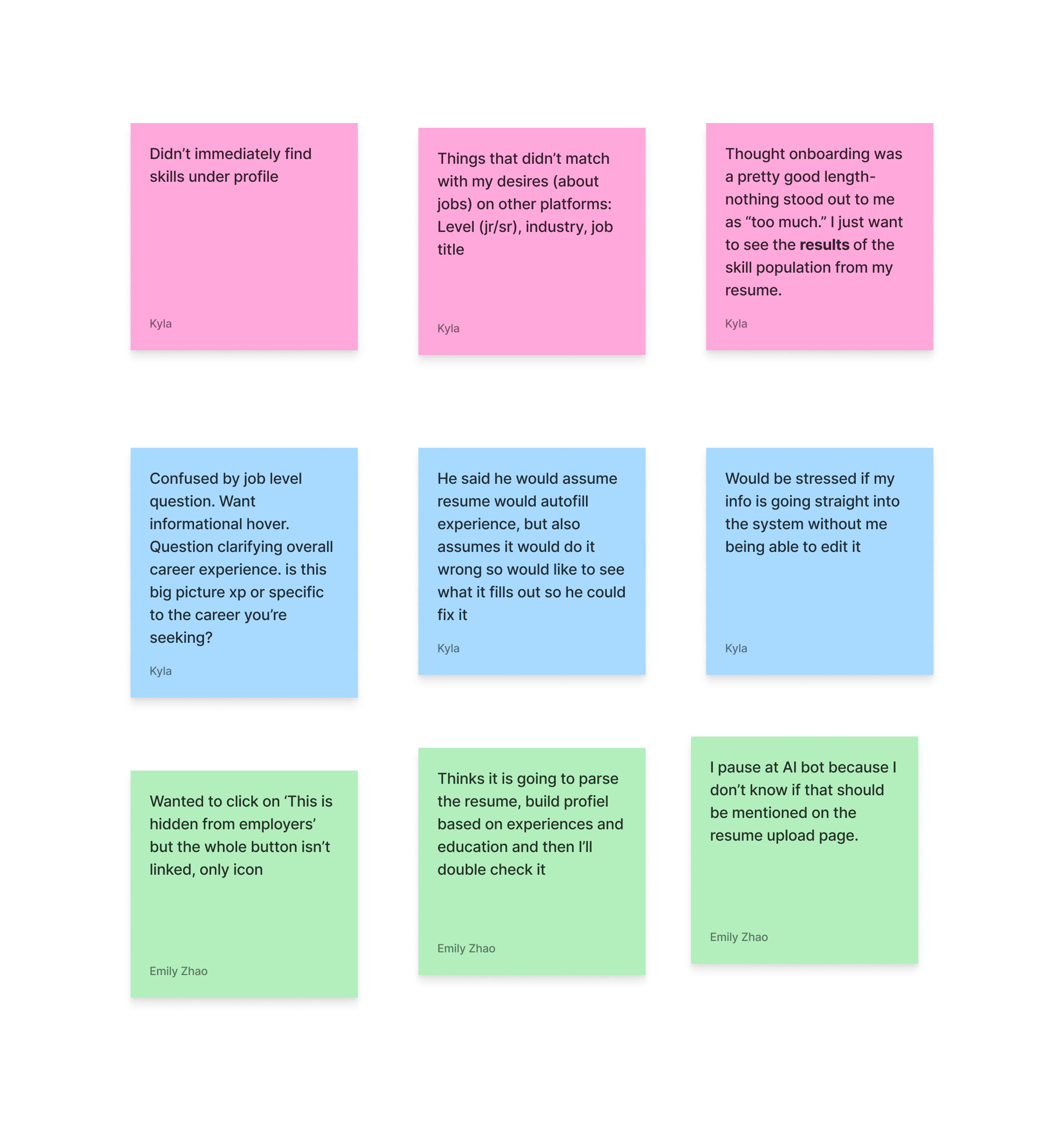 Users still were questioning their trust on how resume would be extracted into profile, missing sections on profile, sections that do not provide context. (notes, qualifications)